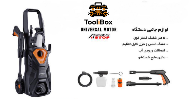 یک کارواش فشار قوی خانگی مجهز به موتور یونیورسال (ذغالی) که برای شستشوی سریع و مؤثر خودرو، موتورسیکلت، حیاط، کف پارکینگ، نمای ساختمان و تجهیزات فضای باز طراحی شده است. این مدل با ابعاد جمعوجور، وزن مناسب و قدرت کافی، گزینهای اقتصادی و کاربردی برای مصارف روزمره خانگی محسوب میشود.